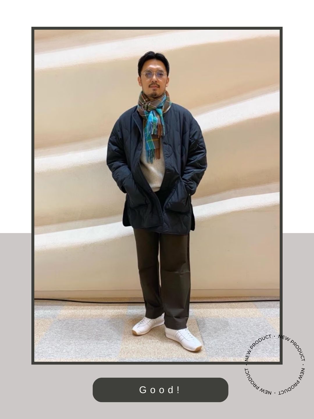 10-20代レトロを現代のサイズ感で崩すオーバーサイズのナイロンジャケットに、太めのスウェットパンツを合わせるスタイル。足元をカントリーでシャープに締めることで、野暮ったさを削ぎ落とした、洗練されたレトロストリートになります。