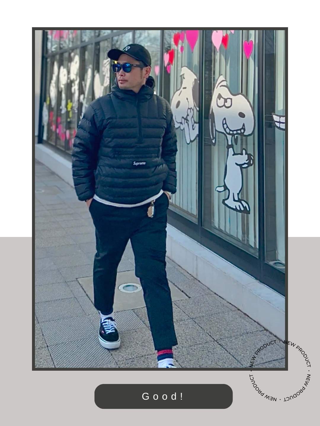 | 10-20代 | 「ロゴ・柄」をアイキャッチに | ワイドアンクルデニム + バックロゴソックス + ハイテクスニーカー。 振り返った時に見えるロゴで遊び心を演出する、躍動感のあるスタイル。 |