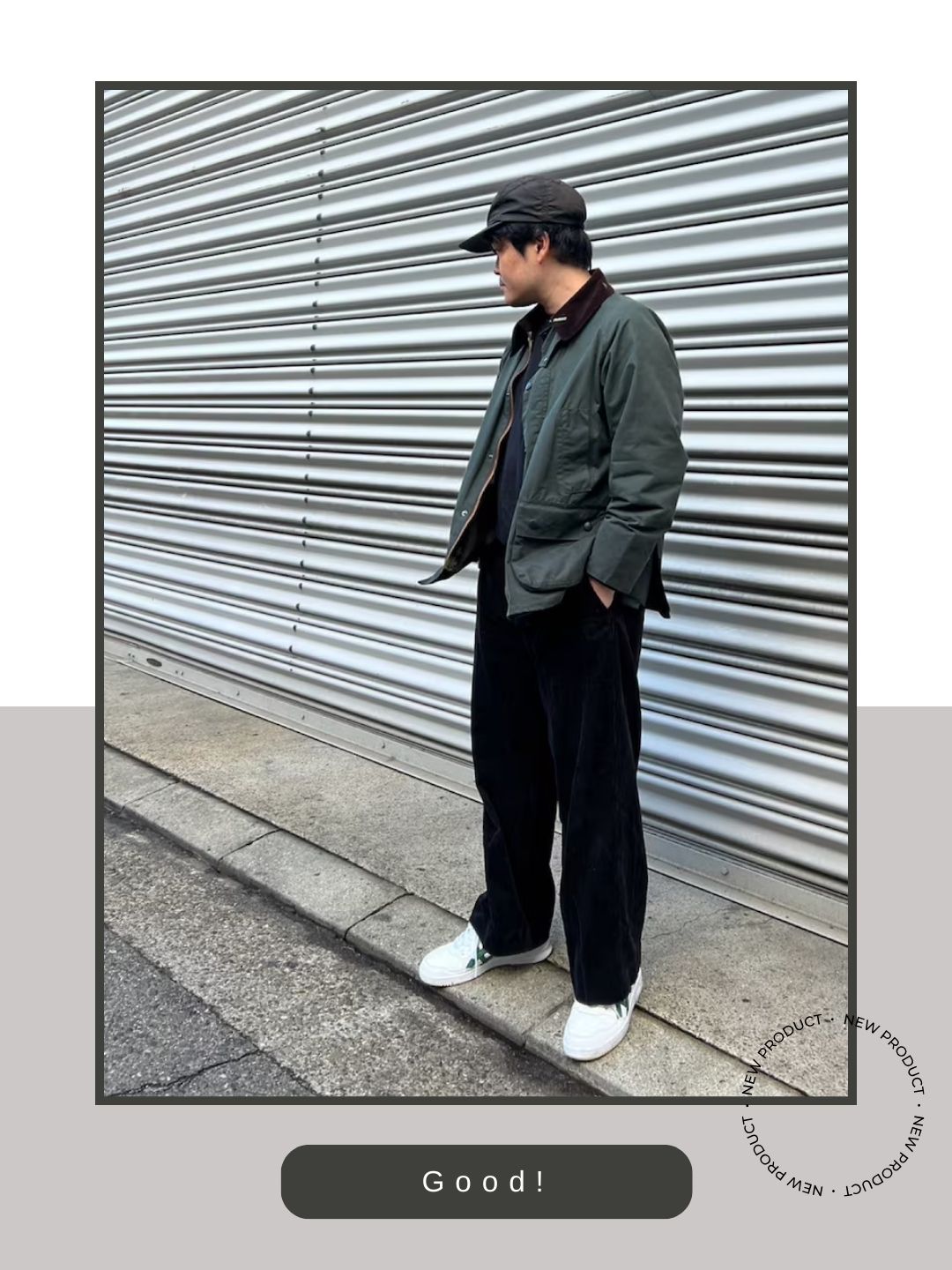 ダークグリーンやブラックといった重厚なトーンで構成された冬の装いの中で、足元のクリーンなホワイトレザーがコーディネート全体をパッと明るく軽快に見せています。全身がダークトーンだと重たくなりがちですが、真っ白なバッシュを置くことで「抜け感」が生まれ、街着としての清潔感と軽やかさをプラスしています。