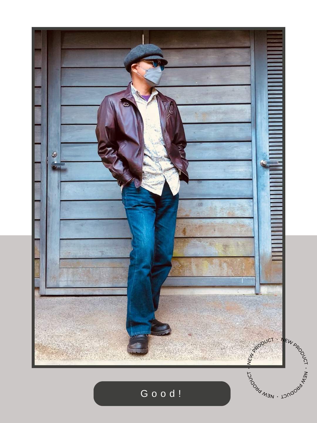 ボルドー系のレザージャケットに対し、足元に同じく重厚な質感を持つセダークレストのワークブーツを合わせることで、コーデ全体の「革」の存在感が際立っています。上下で素材感を揃えることで、武骨ながらもバラつきのない洗練されたまとまりが生まれています。