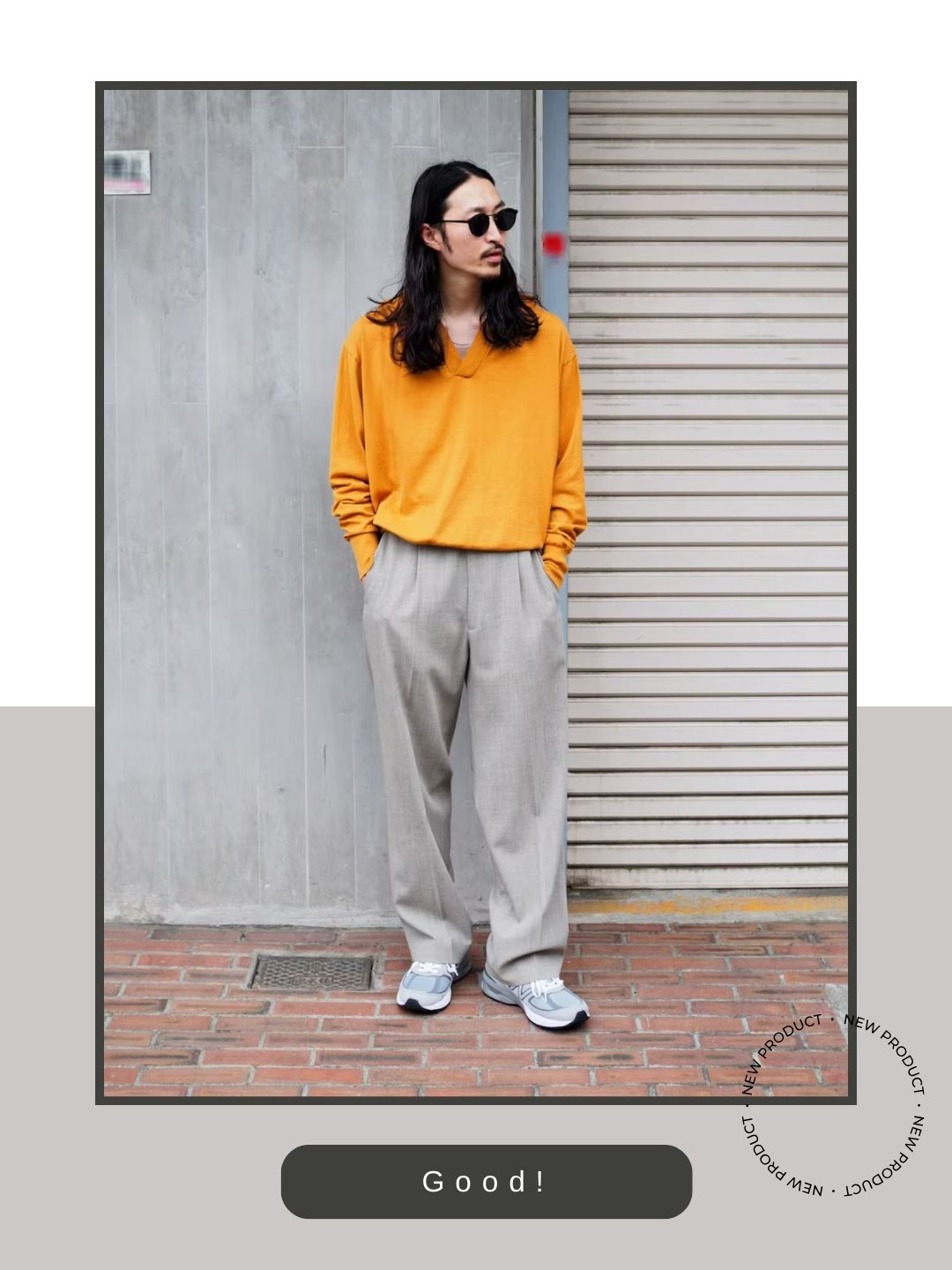 | 10-20代 | ハイエンドなルーズ感 | オーバーサイズのグレースウェットパーカーに、裾がクシュっと溜まるワイドなスウェットパンツを合わせるスタイル。全身をグレーのワントーンでまとめ、足元に990v5を持ってくることで、モードなストリート感を出す着こなしです。 |
