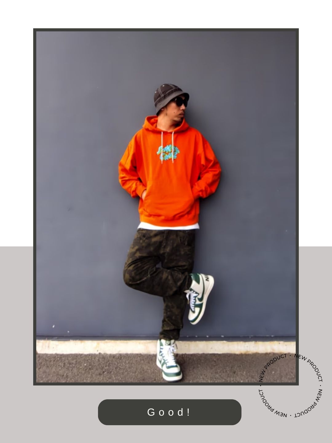 カモフラージュ柄のジョガーパンツを選択し、裾をシューズにイン、あるいはタイトにまとめることで、ターミネーターのボリューミーなフォルムが主役として強調されています。これにより、スニーカーの力強いラインが隠れることなく、全身のシルエットにメリハリが生まれています。