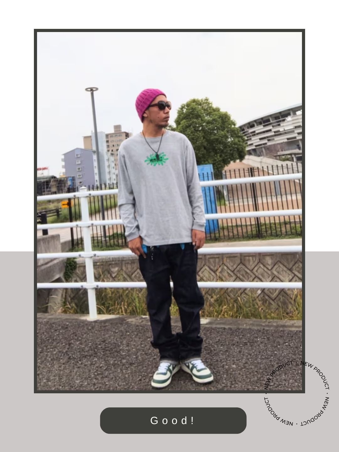 トップスの胸元にあるグリーンのロゴと、ターミネーターのスウッシュ(ロゴ)のカラーをリンクさせることで、上下の視覚的な繋がりが生まれ、統一感のある着こなしになっています。
