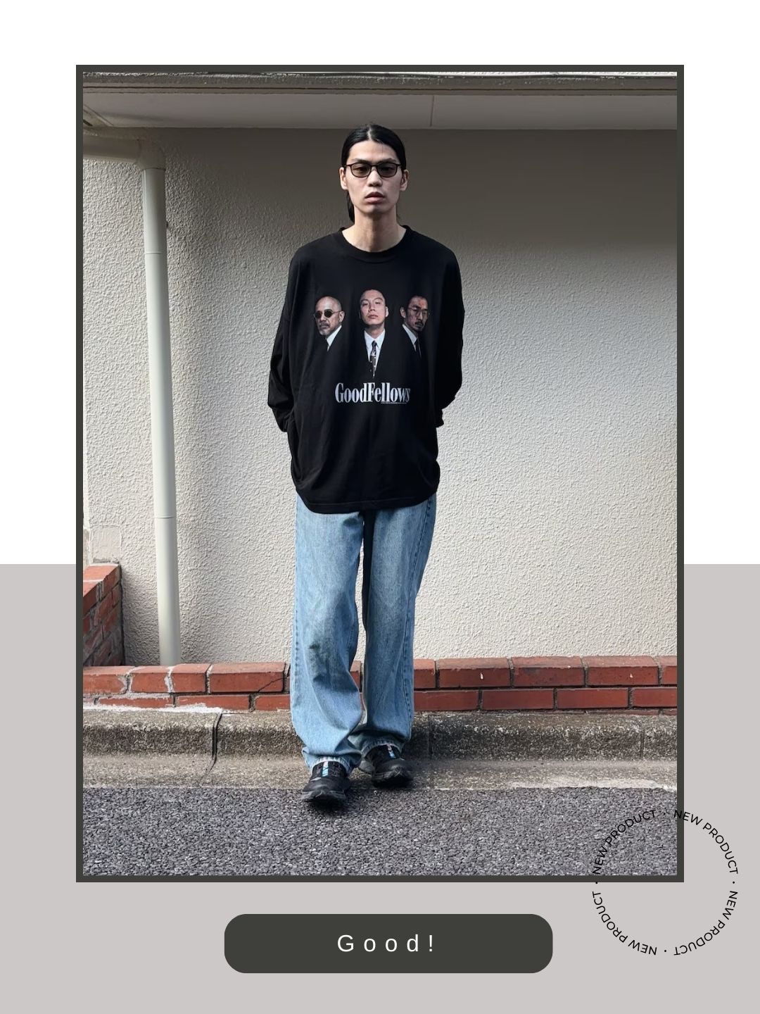 オーバーサイズのTシャツとバギーデニムという一見すると90年代のスケーターファッションのような組み合わせに対し、ハイテクなSALOMONを合わせたのが非常に現代的な選択です。クラシックなローテクスニーカーではなく機能美あふれるテックシューズを置くことで、コーディネート全体に「今っぽさ」と都会的なキレを与えています。